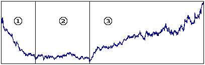Так я все это в то время видел. А как оно на самом деле - действительно ли влияние удачи (случайностей) в форме графика настолько велико, что все могло получиться и по-другому - не могу сказать. Однако я знаю, что размах колебаний результатов сильно зависит от разницы в классе между вами и противниками. Поэтому я почти уверен, что на невысоких лимитах в игре на полный стол, игрок освоивший экономно-агрессивный стиль и не теряющий самоконтроль, может рассчитывать примерно на такую форму графика, как моя третья область. Одно наличие этого стиля создаёт в пассивных низколимитных играх колоссальное преимущество, и это помогает сгладить форму графика. Другой вопрос, что игрок действительно должен сохранять самообладание, иначе небольшие провалы превратятся в убывающие тренды.